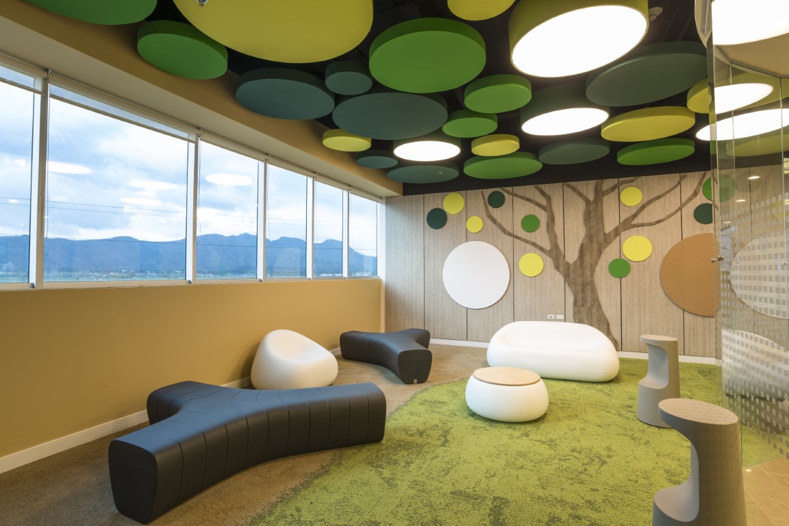 A vibrant office that reflects dynamism, innovation and the brand's DNA.